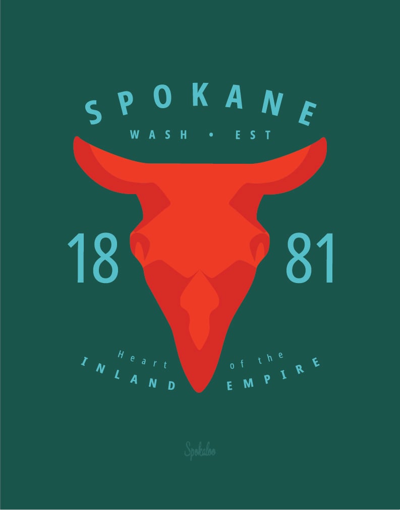 Inspired by Kirtland Cutter’s design of the Monroe Street Bridge, where steer skulls and wagon-wheel motifs marked Spokane’s rise as a hub of westward expansion. This print features a bold steer skull and the city’s founding year — a tribute to Spokane’s frontier past and architectural heritage.